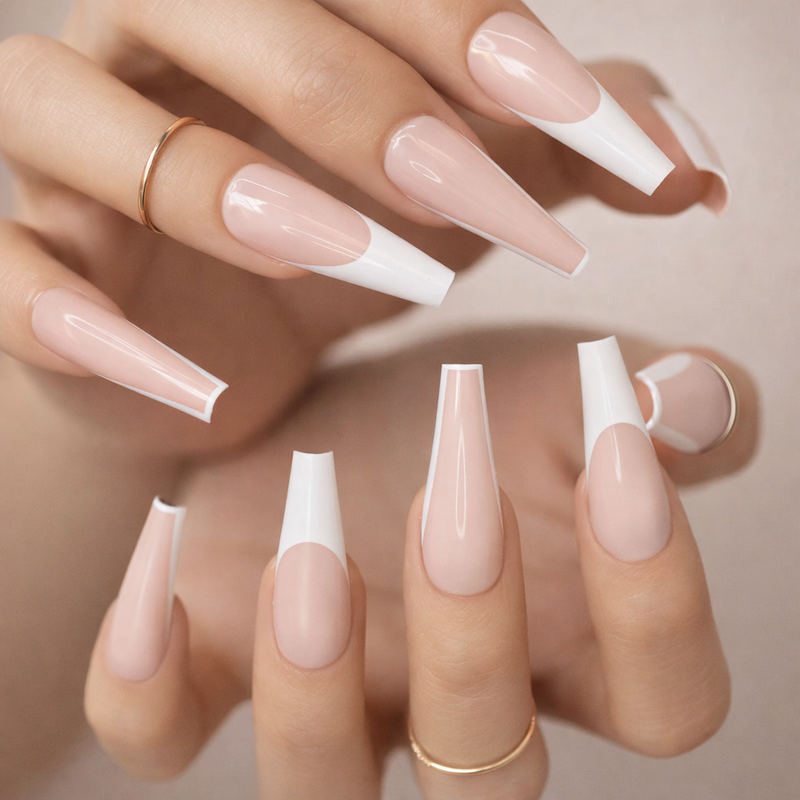 Faux Ongles French Beige Ballerine Longs